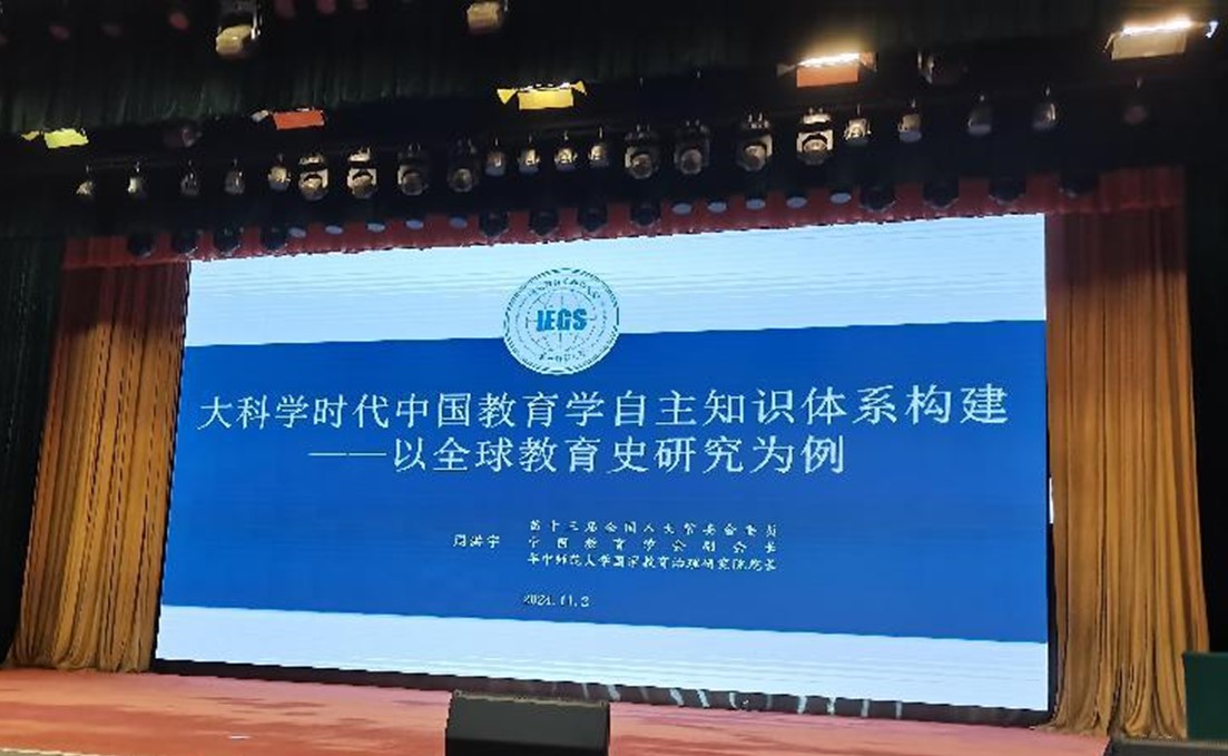 本届年会主题为“教育传统的传承与创新”。大会主题报告环节第一阶段周洪宇教授以《大科学时代中国教育学自主知识体系构建——以全球教育史研究为例》为题在大会上作主题报告。周洪宇教授从习近平总书记发表的“世界已经进入大科学时代,基础研究组织化程度越来越高,制度保障和政策引导对基础研究产出的影响越来越大”重要讲话切入,指出开展“全球教育史研究”是全球化时代背景下社会发展的客观需要、教育学发展服务强国建设、民族复兴伟业总体目标任务的战略需要、回应国际历史学界“全球史转向”范式的需要、教育学学科自身发展的需要,向与会专家学者发出探索“全球教育史研究”的呼吁,并介绍了以华中师大一批教育史和比较教育教师为核心,联合北京师范大学、陕西师范大学、南京师范大学、浙江大学、河南大学、长江大学、曲阜师范大学、云南师范大学、信阳师范大学等多所高校正在有序开展的“全球教育史研究”实践探索。