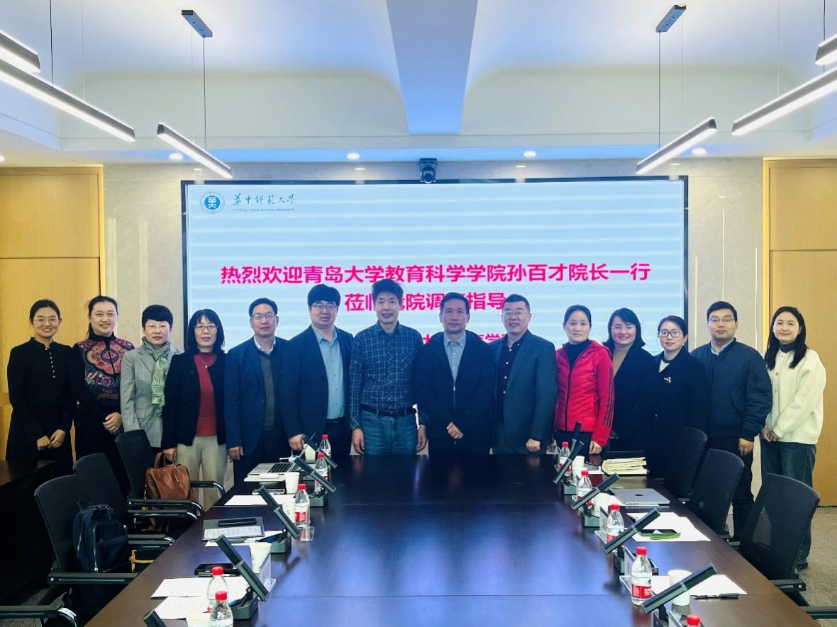 教育学院融媒体中心讯(通讯员 张思敏)2024年11月20日上午,青岛大学教育科学学院调研座谈会在田家炳楼901会议室顺利召开。青岛大学教育科学学院院长孙百才一行到我院调研,华中师范大学研究生院院长雷万鹏、教育学院副院长郑刚及教师吴航、孙玉梅、彭兴蓬、孙银光、本科教学秘书张丹玲等参加,会议由学前教育系主任吴航主持。