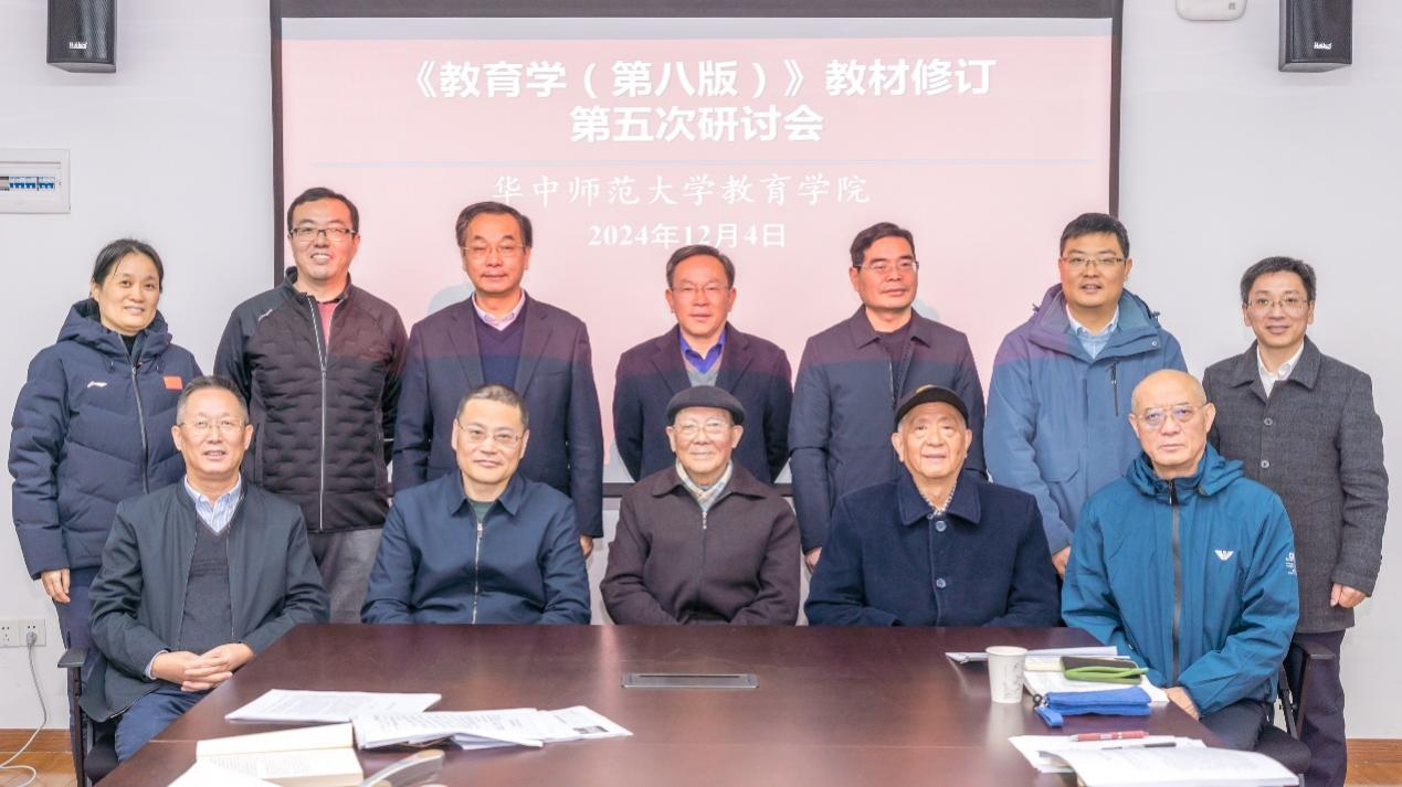 教育学院融媒体中心讯(通讯员 罗祖兵 张萌)2024年12月4日,《教育学》(第八版)教材修订第五次研讨会在教育学院909会议室顺利举行。人民教育出版社教育理论编辑室副主任韩华球、高级编辑龚鹏飞,《教育学》(第八版)的主编郭文安教授、副主编涂艳国教授、王坤庆教授以及各章节负责人董泽芳、郭元祥、杜时忠、岳伟、吴航、田友谊、罗祖兵等参加了研讨会,研讨会由韩华球主持。