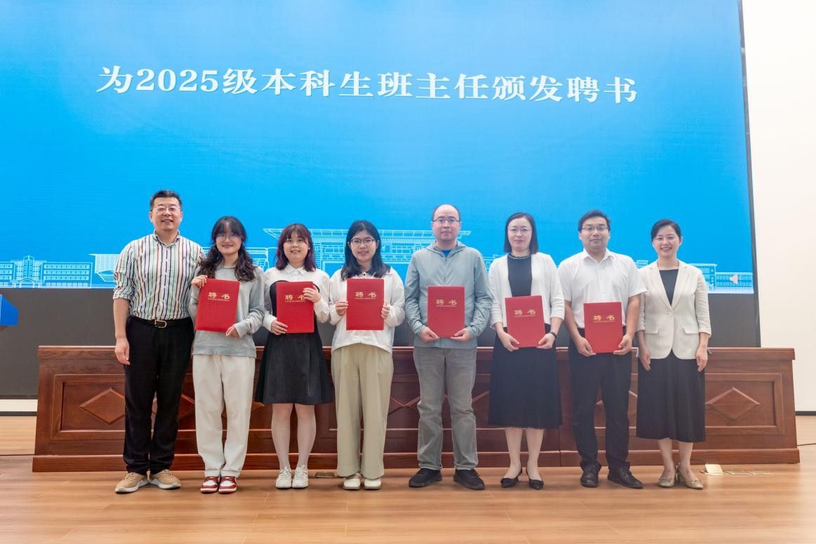 班主任是班级管理的核心和学生成长道路上的重要引路人,为做好2025级本科新生工作,学院聘任孙银光、李芳、王鶄、张鑫、徐伟琴、刘文元、卢旭、曹心怡等八位教师担任2025级本科新生班主任,苏春艳、郑刚为班主任代表颁发聘书。