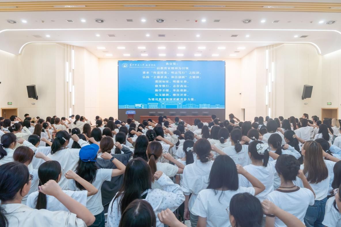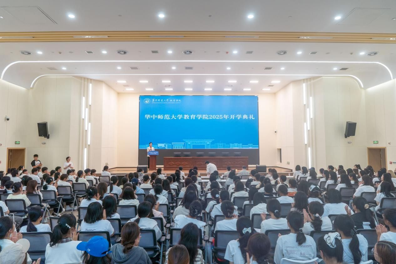 教育学院融媒体中心讯(通讯员 徐思雨 勾良爽 邓渝欣) 9月21日下午,教育学院2025年开学典礼在新大学生活动中心B栋四楼报告厅举行。学院党委书记陈雪玲,院长雷江华,党委副书记苏春艳、王璐,副院长郑刚,教师代表杜时忠、李卉、邹欣灼,本科新生班主任代表孙银光、李芳、王鶄、徐伟琴、卢旭、曹心怡,全体辅导员及2025级本研新生三百余人参加,典礼由王璐主持。
