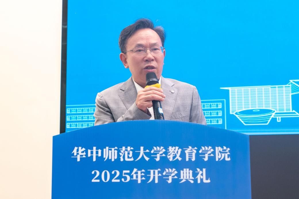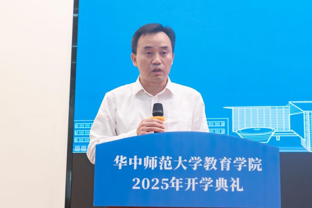 雷江华代表全院师生向2025级新生表示热烈欢迎,他回顾了学校红色校史,介绍了学院的深厚底蕴与丰硕成果,并以“未来教育家的时代模样”为主题寄语新生。雷院长勉励新生要以立身、立学、立志勾勒教育者安身立命的核心底色,以践行教育家精神、深耕基层实干、牢记使命追梦为教育者的时代模样写下鲜活注脚,要将数字技术之“器”与立德树人之“道”相融合,秉承学院院训,发扬学院精神,多读书,勤思考,敢实践,用奋斗写出不辜负时代、不辜负自己青春的精彩华章。