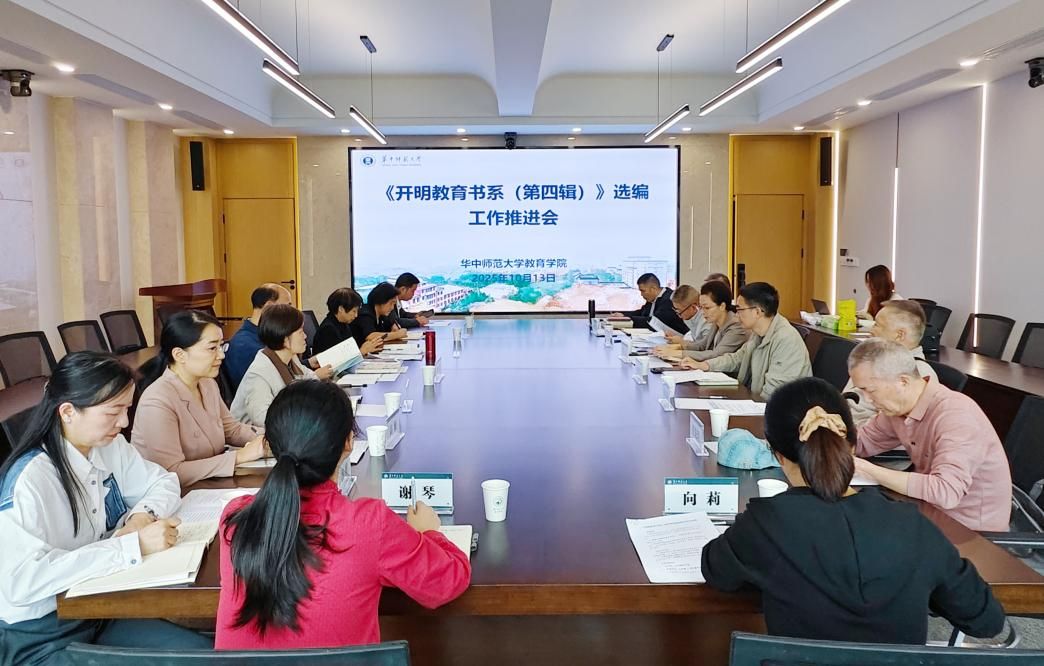 教育学院融媒体中心讯(通讯员 吴宇琳 刘馨雨)为学习贯彻习近平总书记关于做好新时代党的统一战线工作的重要思想,10月13日下午,《开明教育书系(第四辑)》选编工作推进会在田家炳教育书院901会议室顺利召开。民进湖北省委员会副主委、一级巡视员周建元,秘书长、一级调研员张琼,宣传部部长程虹,华中师范大学党委统战部常务副部长冯圣兵,教育学院党委书记陈雪玲,民进湖北省委会原主委、华中师范大学国家教育治理研究院院长周洪宇,民进华中师范大学委员会副主委高巍,教育学院教授范先佐、杨汉麟、周东明、欧阳光华、李先军,出版社总编室主任谢琴等出席会议。会议由冯圣兵主持。
