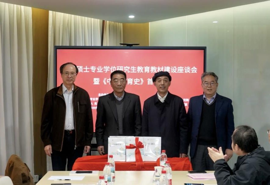 教育学院融媒体中心讯(通讯员 李楠)2025年11月14日,“教育硕士专业学位研究生教育教材建设座谈会暨《中国教育史》首发式”在华中师范大学桂苑宾馆5楼会议室举行。中国教育学会副会长、华中师范大学周洪宇教授、全国教育专业学位研究生教育指导委员会秘书长、北京师范大学张斌贤教授、国务院学位委员会教育学学科评议组成员、浙江大学刘海峰教授、华东师范大学黄书光教授、东北师范大学曲铁华教授、厦门大学张亚群教授、华东师范大学王保星教授、武汉大学程斯辉教授、西南大学谢长法教授、杭州师范大学张学强教授、中国教育学会教育史分会秘书长、北京师范大学王晨教授及作者代表东北师范大学王凌皓教授、南京师范大学刘齐教授、山西大学孙杰教授、河北师范大学刘京京教授等参加此次座谈会。