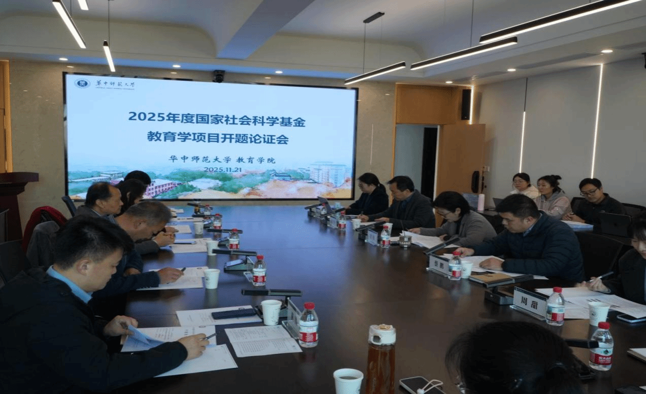 教育学院融媒体中心讯(通讯员 余珺 疏丽萍 韩晨)2025年11月21日上午,徐添喜教授和韩晨博士主持的2025年度国家社会科学基金教育学一般项目和青年项目开题论证会在田家炳教育书院903会议室隆重举行。华东师范大学教育学部邓猛教授、北京师范大学教育学部贺荟中教授、陕西师范大学教育学部郭文斌教授、华中师范大学教育学院田友谊教授和华中科技大学智能制造装备与技术全国重点实验室黄涛教授组成的开题论证专家组亲临现场指导,社科处处长段锐、副处长蔡鹏、项目主管周甜、教育学院院长雷江华、特殊教育系主任孙玉梅等师生代表30多人参会。