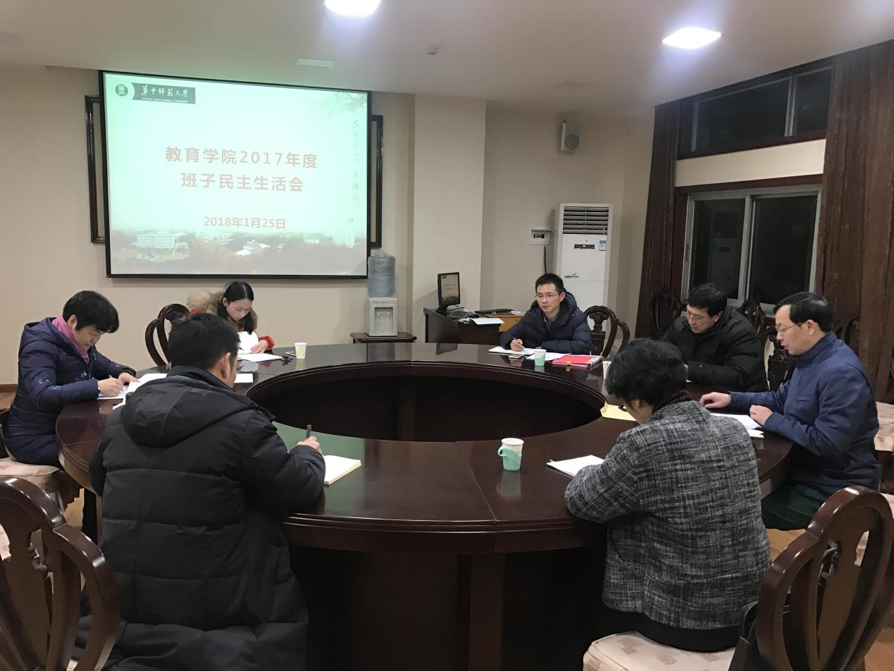 (编辑:徐仕晔)按照学校党委的统一要求和部署,2018年1月25日晚,教育学院2017年度班子民主生活会在田家炳楼403会议室召开。校党委书记黄晓玫同志亲自到会指导,院班子全体成员参加会议。
