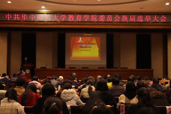 (通讯员:李筱雨 编辑:吴佳妮)2019年3月1日下午,中共华中师范大学教育学院委员会换届选举大会在科学会堂一楼报告厅顺利召开。255名正式党员参加会议,符合换届选举人数要求。院长雷万鹏主持会议。