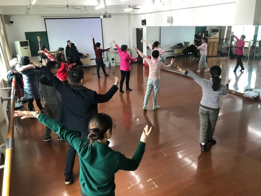 (我院教职工在田家炳楼十楼舞蹈房排练舞蹈)