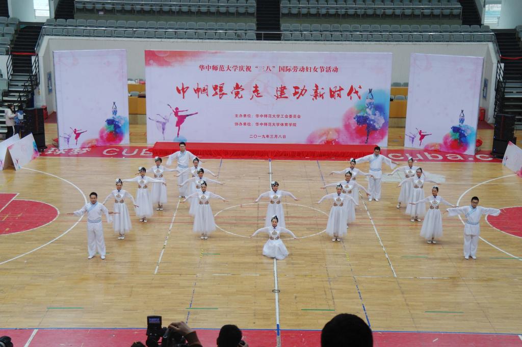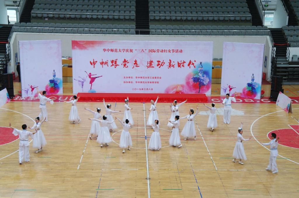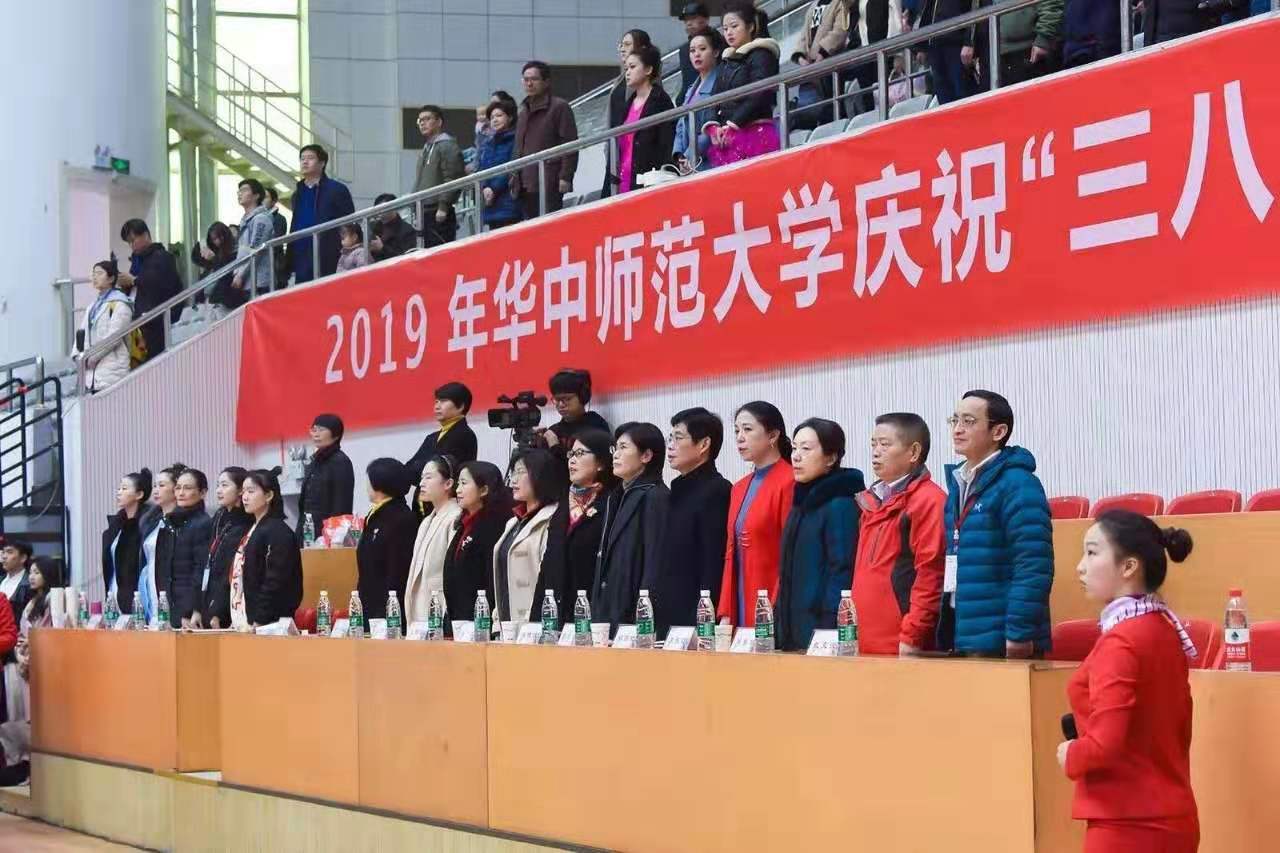 教育学院宣传中心讯(记者:张萌 摄影:袁腾飞 郑怡岑 李露 仲子昂 任博轩 郝文钰 李英祺 曹淼 经湛 黄婕 编辑:张萌)3月10日下午14时许,我校2019年度庆祝“三八”国际劳动妇女节活动在佑铭体育场正式举行,活动分庆祝活动和各单位教职工代表参加的排舞比赛构成。湖北省总工会女职工部部长徐蓉、湖北省教科文卫体工会副主席赵黎、华中师范大学党委书记黄晓玫、党委副书记、纪委书记陈厚丰,武汉市妇联女工部领导,华中科技大学、武汉大学、武汉理工大学、湖北大学和武汉轻工大学等高校的工会负责人,学校机关及直附属单位和学院的领导以及教职工参加了此次庆祝活动。