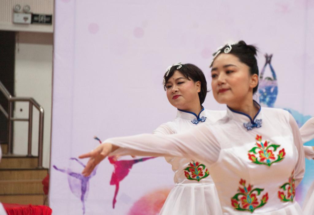 在第20位次出场的我院教师伴随着《天使的翅膀》缓步入场,一席白纱似人间天使,队伍中4名男教职工代表融入整个表演团队,带来荣中带刚、刚中有柔的整体表现形式,女教职工们袅娜腰软、莲步轻移、柔肢曼摇,颦蹙回眸间展现教院人的典雅气质与优雅风范。我院凭借优异的表现,荣获“最佳风采奖”