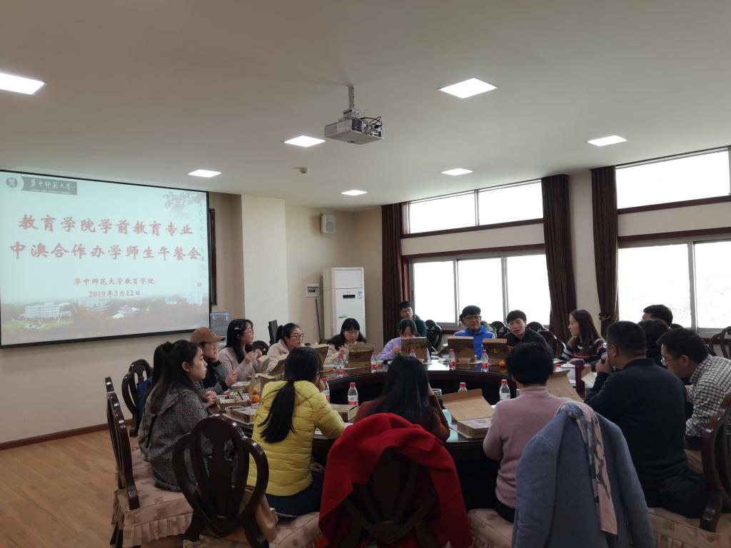 (通讯员 马英 编辑 吴佳妮)为进一步了解学院学前教育中澳班学生学情,加强与学生的沟通与交流,3月12日中午,我院在403会议室召开学前教育专业中澳合作办学师生午餐会。分党委书记李玲、副院长蔡迎旗、副院长申国昌、分党委书记张扬、工会主席王建梁、学前教育中澳班教师代表吴航、刘丽伟及各年级中澳班学生代表近20人参加了午餐会。