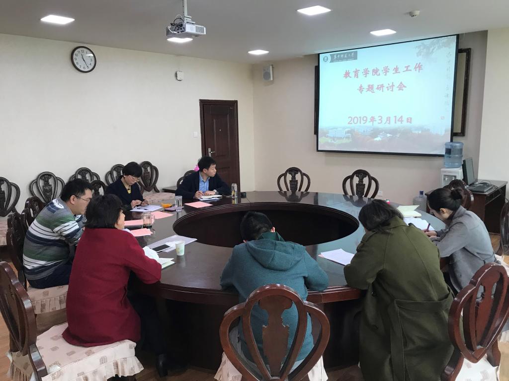 (通讯员:覃娟 编辑:陈棋)2019年3月14日上午9点,在田家炳403会议室召开我院学生工作专题研讨会,党委书记李玲、党委副书记张扬,学院全体政工干部参加,会议由张扬主持。