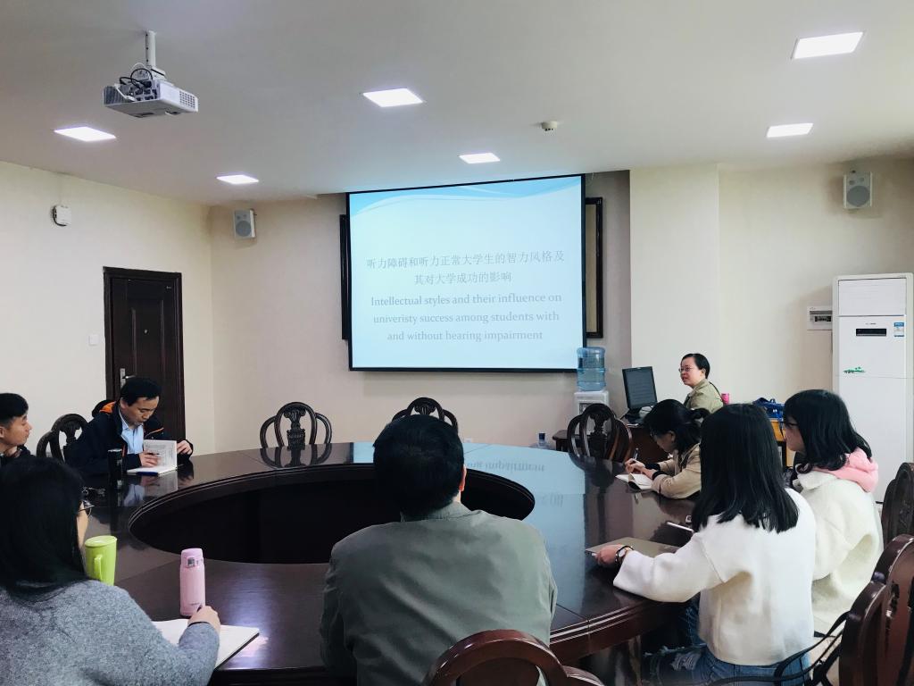 (通讯员:马红霞 编辑:吴佳妮)3月21日中午,教育学院第33期学术午餐会在田家炳403会议室举行。午餐会由副院长申国昌教授主持,特殊教育系程三银副教授主讲,报告主题为《听力障碍和听力正常大学生的智力风格及其对大学成功的影响》。雷江华教授、周小李教授等师生到场参加。