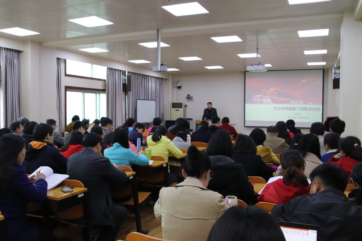 申国昌以“文化自信涵盖下的教育自信”为题,从文化自信的内涵及意义、文化自信呼唤教育自信、增强教育自信的新方略三个方面对两会精神进行解读。文化是一个国家、一个民族的灵魂。文化兴,国运兴;文化强,民族强。坚定文化自信,是着眼于新时代坚持和发展中国特色社会主义、实现中华民族伟大复兴而提出的,体现了我国高度的文化自觉,彰显了我国的鲜明文化立场。