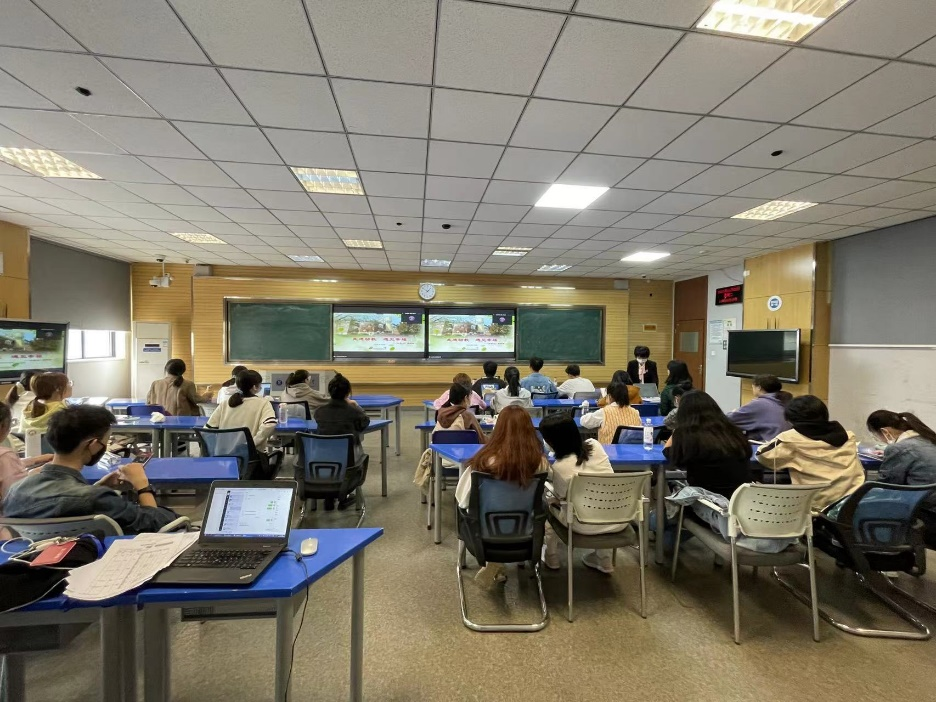 其次,谭照娥通过短片介绍华中科技大学附属幼儿园,引导同学们思考“你理想中的幼儿园是什么样子?”。谭照娥也分享了自己对于理想幼儿园的描述,即快乐、尊重、全纳、纯净、美好,并讲述自己与孩子发生的有趣的故事,引导同学们未来去探索儿童的世界。
