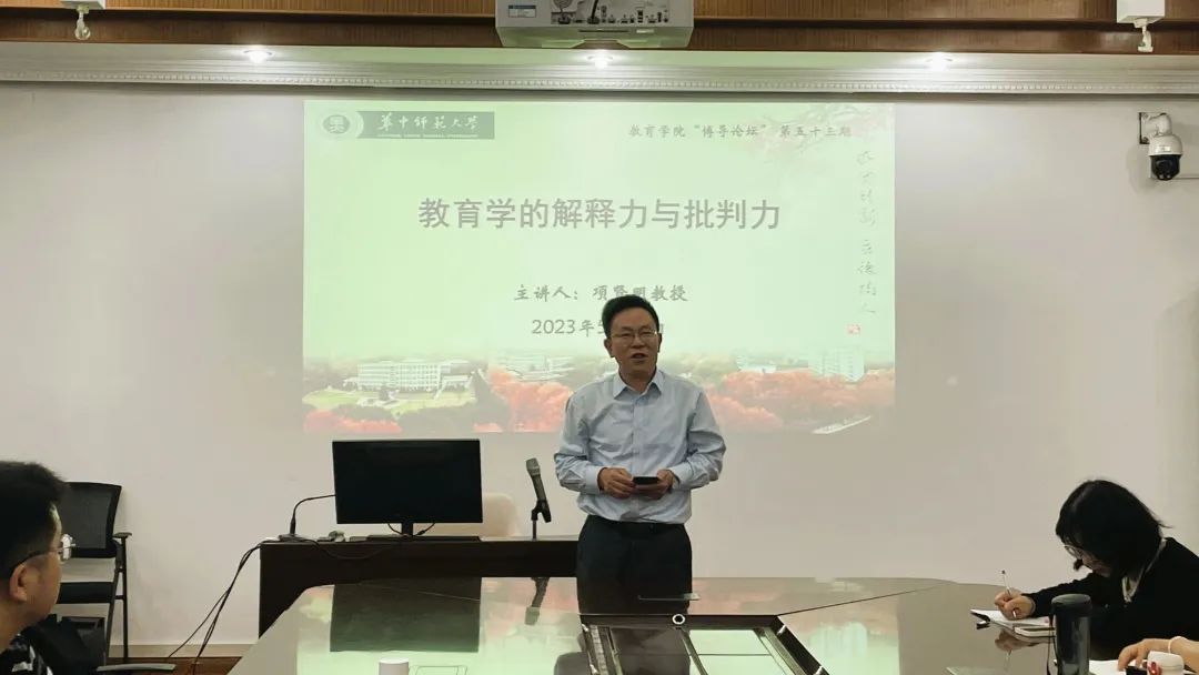 讲座中,项贤明教授以学界对于教育学的污名与误解作为导入,以风趣的形式提出了一个严肃的命题:提高教育学的地位应依靠教育学自身对于现实教育现象与观念的解释力与批判力。