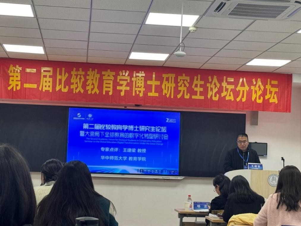 2023年12月16-17日,由中国教育学会比较教育分会主办,西南大学教育学部承办的以“大变局下全球教育的数字化转型”为主题的第二届比较教育学博士研究生论坛顺利召开,来自全国40余所高等院校、科研机构、中小学校、期刊出版机构的200余名专家学者和博士研究生参加了本届论坛。本届论坛包括主论坛报告、分论坛报告、圆桌论坛,其中主论坛报告包括学术主旨报告、博士生大会报告两项议程,分论坛报告共10场,圆桌论坛包括期刊编辑圆桌论坛与学业指导圆桌论坛。我院比较教育学专业王建梁教授及部分研究生应邀参加。