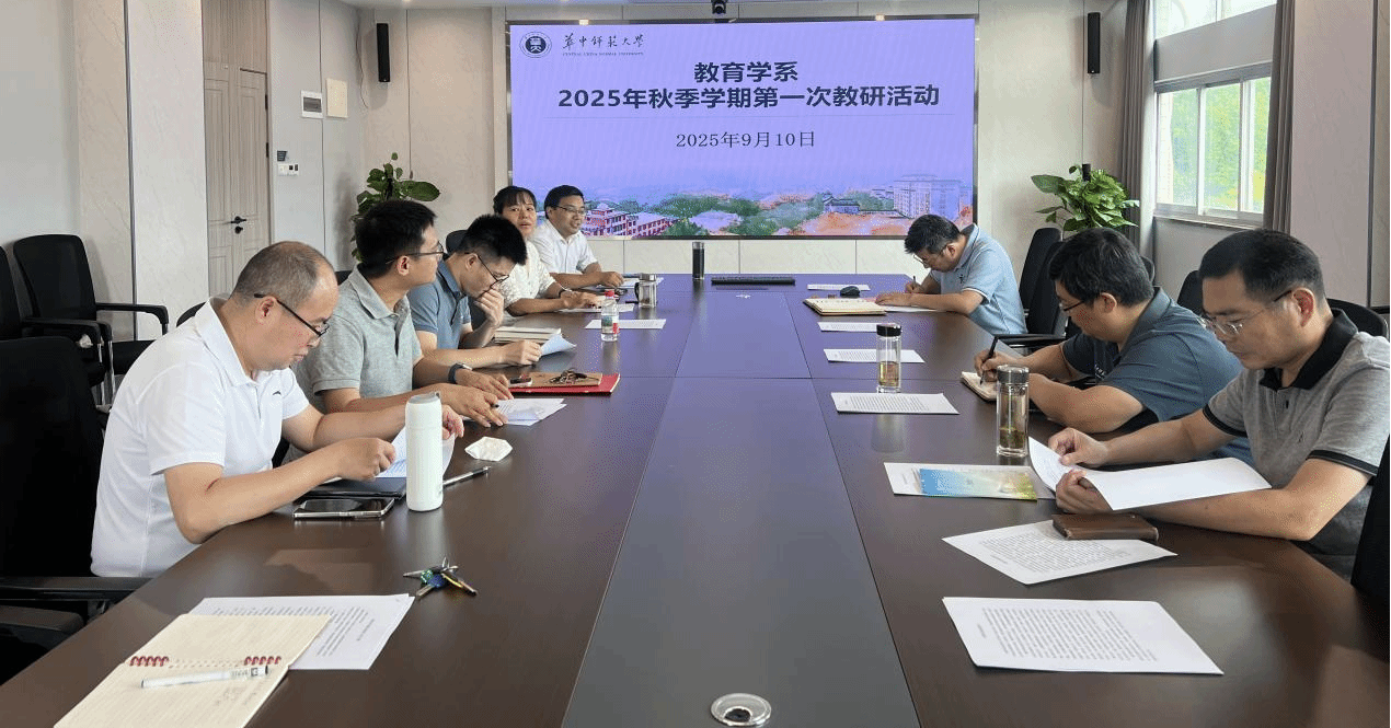 教育学院融媒体中心讯(通讯员 李芳)2025年9月10日下午,教育学系于田家炳楼624会议室召开秋季学期第一次教研会,聚焦青年教师教学技巧训练、教学质量提升、创新实验班建设与师道精神传承。涂艳国教授、杜时忠教授、岳伟教授、田友谊教授、程红艳教授、卢旭副教授、张添翼副教授、孙银光副教授、邹红军副教授、程豪博士、李芳博士参加教研活动,教育学院教学副院长郑刚教授莅临指导,华中科技大学教育科学学院李伟教授、华中师范大学人工智能教育学部吴河江博士参与交流。