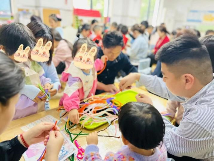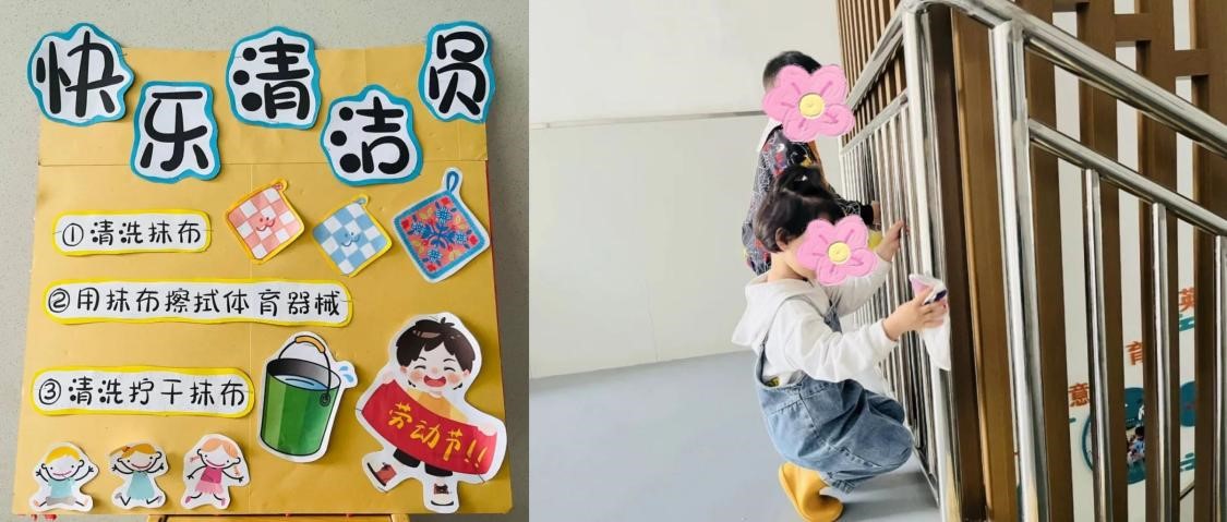 教育学院融媒体中心讯(通讯员 张别韵 蒋思绪 何小蝶) 勤劳耕春常在,劳动创幸福。携一缕春日的阳光,踏着童年的步伐,迎着五月浸满劳动与智慧汗水的风,六渡桥幼儿园实习小队的成员们与园所老师一起组织开展并参与了“小小打工人,一起趣劳动”的劳动节系列主题活动。与幼儿园的宝贝和家长朋友们一同度过了一个充满童趣与成长的劳动节。活动主要由“劳动集结令”的班级活动和“快乐打工记”的园所游园会活动组成。在“劳动集结令”的号召下,实习小队的成员们与小朋友和家长朋友们一同化身动手小达人,从手工制品到美食制作再到创意环保制造,共同播撒下爱劳动的种子。在“快乐打工记”的游园活动中,实习小队的成员们分别在各劳动岗位就位,带领“小打工人们”化身图书管理员、快递员、厨师、环卫工人等体验不同的劳动职业,共同致敬美好生活的缔造者!
