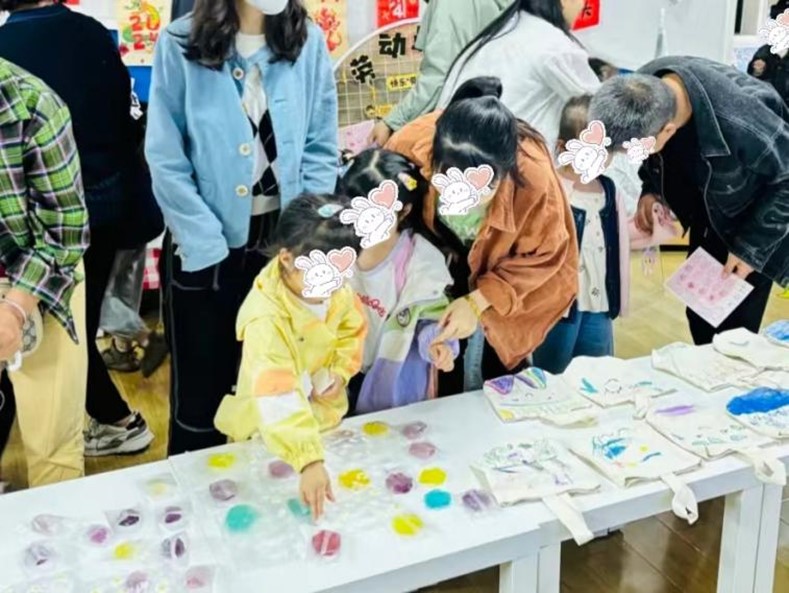 实习老师蒋思绪表示,从材料准备到成品制作到活动宣传板制作再到现场的机动安排,活动全程的参与让我看到班里的大小可爱们都当了一回“想不到的手艺人”。在班级活动中,她主要负责协助指导家长,与幼儿一起制作香皂,记录幼儿活动剪影……一个个天然萌趣的手工皂、一抹抹不拘一格的色彩,一个个不羁爱自由的形状,以手工皂DIY方式定格了最美丽的瞬间、最有创意的灵感、最值得回味的画面。