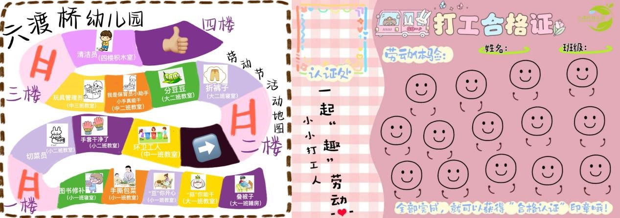 完成“劳动集结令”班级活动的小朋友可以获得一张“打工合格证”,随后就可以和家长一起在园内各点位开始打工啦!