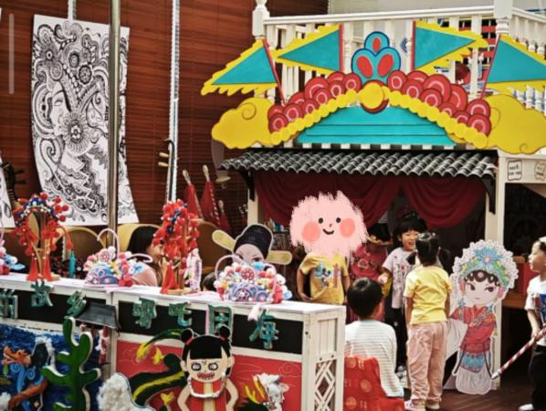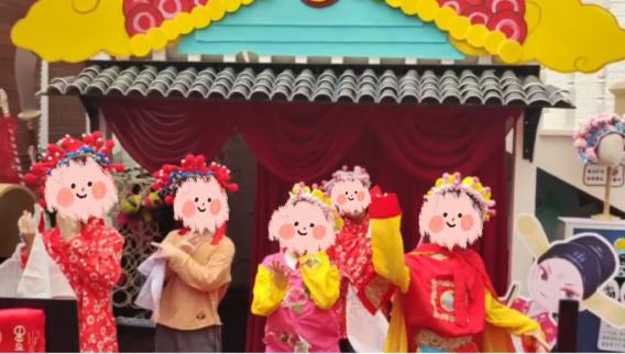 在中一班的京剧博物馆现场,老师们精心布置了充满京剧元素的环境:脸谱、戏服、头饰,化妆室、舞台、观众席也一应俱全,孩子们仿佛置身于一个真实的舞台。