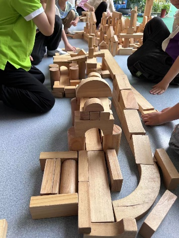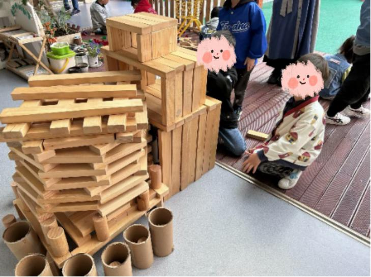 期间,活动区中充满了孩子们的欢声笑语,每个孩子都沉浸在创造的乐趣中。实习生细心地记录下孩子们专注和欢乐的瞬间,拍下了一张张珍贵的照片。作品完成后,实习生们将优秀的积木作品进行拍照留档,并展示在操场的展示区,供小朋友们相互观赏和学习。
