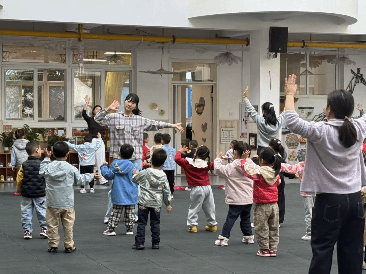 活动伊始,幼儿园彭老师在门口迎接大家,并简要介绍活动安排。同学们首先观摩幼儿晨间锻炼活动,从而对幼儿一日生活中晨间锻炼环节的组织与实施有了初步了解。