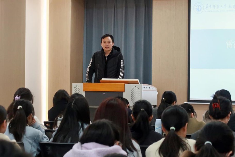 雷江华副院长做实习动员讲话,表示要将理论与实践相结合,强调“见习、实习、研习”三位一体的重要性,叮嘱大家在外实习要注意人身安全,遵守学校管理制度及当地风俗,希望同学们在实习中提升教学能力,展现华师风采。