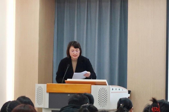 苏慧作为教师代表发言,对实习工作提出了几点建议:一是要注意安全,外出及时报备,不得擅自行动;二是认真完成教学、班级管理和教育调查工作,加强与指导老师交流;三是明确身份定位,处理好与学生、老师之间的关系,积累社会经验;四是提升学科素养,抓住机会,提升授课能力。