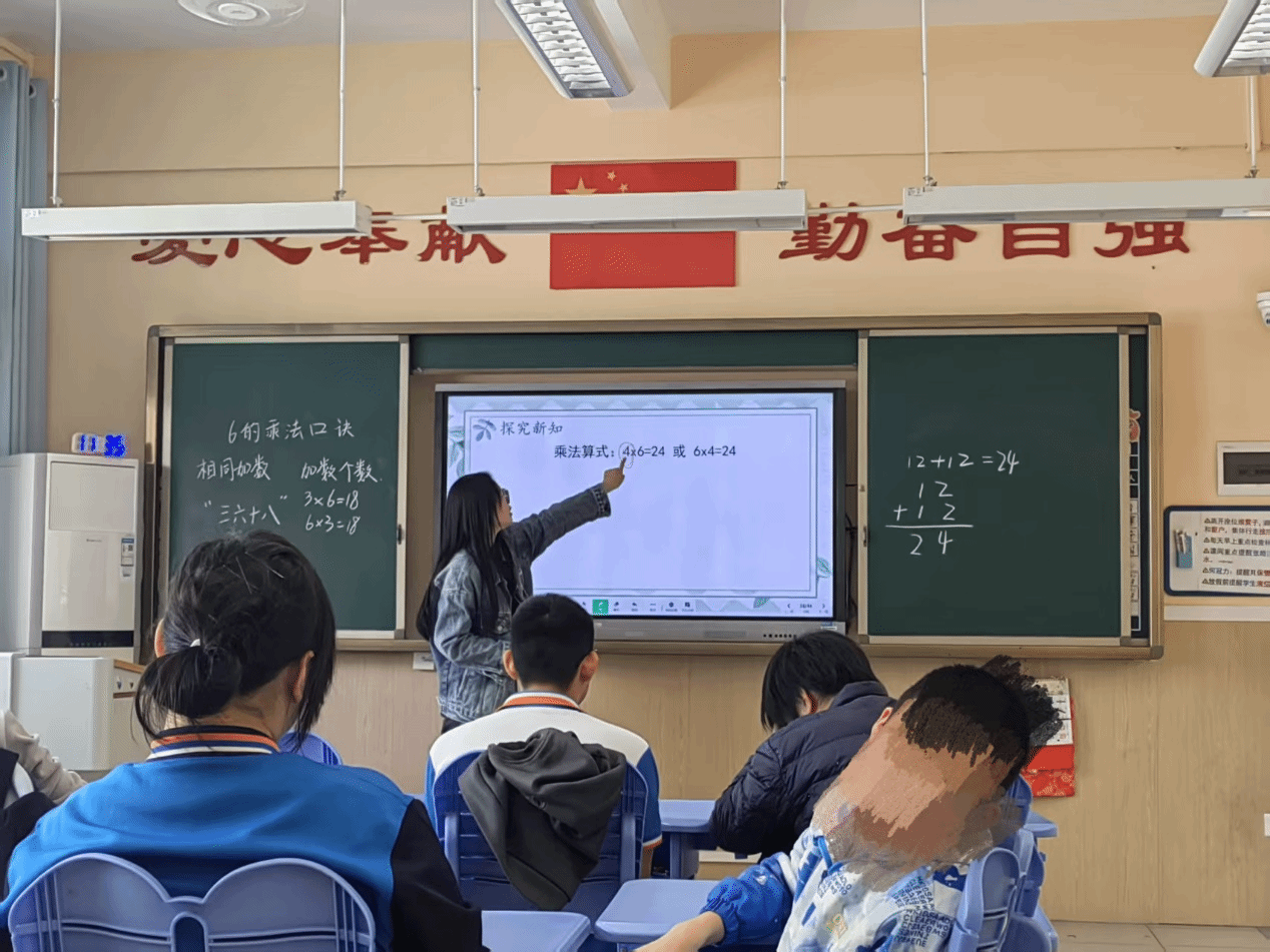 在熟悉班级学情、与学生建立良好情感联系后,实习生们逐渐展开独立授课实践。“上完《6的乘法口诀》,我认为课程整体的节奏安排符合我们班学生的学情,但还有很多细节方面我依旧需要把握精进,我还有许多需要学习的地方”,马同学如是说到。杨同学上完课后感叹到,“在上课之前我感觉很忐忑,上台还需要深呼吸几下,不过在讲台上多站一会儿、多讲几句,看着学生抬头认真学习的样子,我就很快地进入了状态,我感觉自己已经逐步适应了老师的身份”。从教案反复打磨到课堂随机应变,我们努力实现从“知道”到“做到”的跨越。