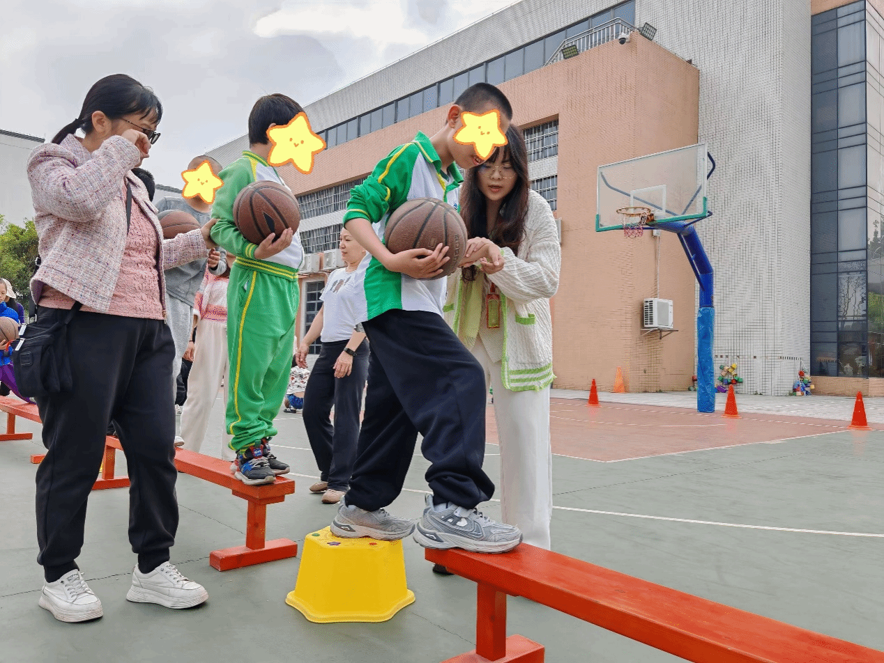 通过担任每日大课间活动的实习班级“引导教师”角色,实习生们深入体验阶梯式训练活动,精准捕捉特殊儿童从被动到主动的行为转变,将康复训练理念融入动态互动场景。实习生肖同学在实习日记中写到,“刚开始我们班的圳圳很抵触参与大课间活动,对于我这个刚认识的老师更是不愿搭理,但通过反复在大课间对他行为及情绪活动进行观察,摸清他的心理状态与抵触原因,我终于在第四天的大课间活动中找到合适的方式,成功鼓励他参与到游戏中”