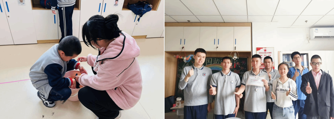 职业教育是促进特殊学生完成义务教育阶段、进而实现就业的重要途径,实习老师依托厦门特校职教特色课程和校本教材《孤独症学生职业教育教学指南系列丛书》,系统性开展职业素养授课。面对康复部四年级学生,实习老师教授职业技能如擦、扫等,在劳动实践中掌握劳动技能、促进生活适应;而针对即将进入职场的培高部学生,实习老师以“我是校园保洁员”为线索,开展一系列职业素养课程,涉及“职业认知”“金钱管理”“职场社交”和“自我管理”等主题。这些课程紧密结合学生未来生活与职业发展需求,有效提升了学生的职业素养和社会适应能力。