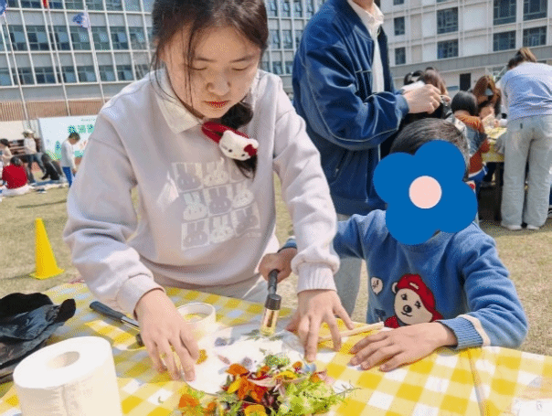 除了日常的教学工作,实习生们还积极参与了龙苑学校的各项活动,与师生们建立了深厚的感情。例如:4.2孤独症日的手工活动、劳动技能风采展示、5.16助残日融合活动等……在活动中,实习生们积极辅助特殊儿童参与活动,增加孩子们的体验感、参与感与成就感。