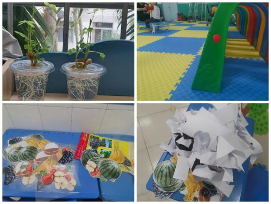 刚开始一个星期,我们在班上见习,观察每个儿童的障碍类型和问题行为,以及班级教师是如何管理和建设班级。一个多星期的时间,我和孩子们渐渐熟络起来,他们会在下课的时候,往我坐的凳子上一钻就钻进了我的怀里或是用手指指自己,再指指我,示意要抱抱再或是在紧张和害怕的时候双手紧紧攥住我的手不肯放开......孩子们天真无邪的笑脸、清澈的眼神、喜怒于形的行为和表现,这些都深深改变了我对他们的初始印象,他们就像降落人间的天使令人喜爱。我和孩子们一起经历的这段时间里我们亲手栽种花生、制作生日帽以及为班级同学举办生日会等活动,我们在这些看似平常的日子里一点点增进对彼此的熟悉和了解......