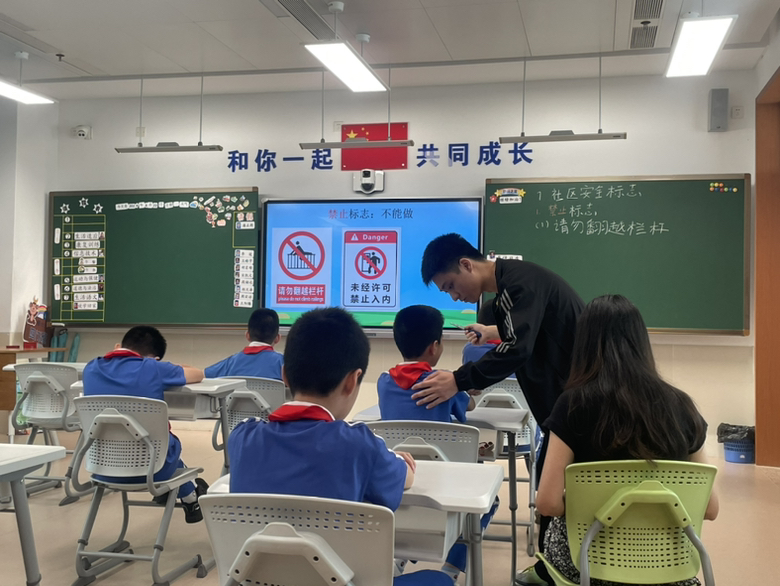 4月10日,这是我在203班的第四节道法课。本节课的主题为“安全地玩”。在之前的课上,我发现我的课程讲授的部分比较多,而二年级的同学对传统的讲授型课程并不是很感兴趣。比起被灌输知识,他们更喜欢提问、动手操作,在课堂巡视时我也发现,很多孩子都非常的有创造力,他们会自己制作小玩具,还会发挥想象画一些天马行空又温馨浪漫的画。