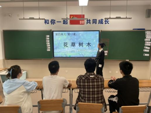 “生活即教育”,在生活当中的每一件小事都可以成为教育的案例。“詹老师和我说,生活语文就是在生活当中的语文,需要在生活场景中去教学。”在实习中,实习生除了上课外,还需要了解正副班主任的工作。其中就包括陪同学生到食堂吃饭,在食堂旁边就可以看到一大片草地。“同学们来看看我们学校里面的青草都长出来了,花都开了,是不是春天到了。”在恰当的时间,偶然的发现中,他也会将课本中的内容带到学生的生活当中去。