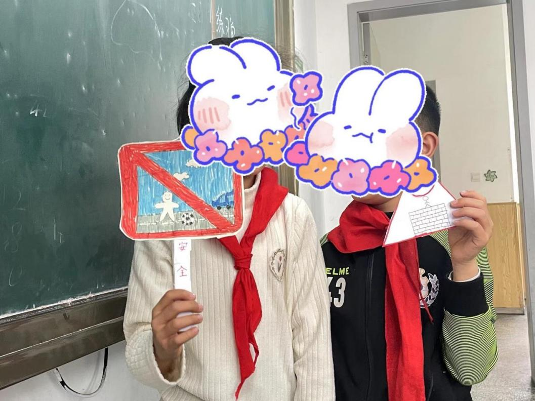 于是我结合本节课主题,让他们提前准备了彩笔、彩纸、胶水、剪刀等工具,寻找游戏过程中可能出现的安全隐患,制作相关的安全告示牌。同学们对此非常感兴趣,一个个都沉浸在动手制作的过程中。