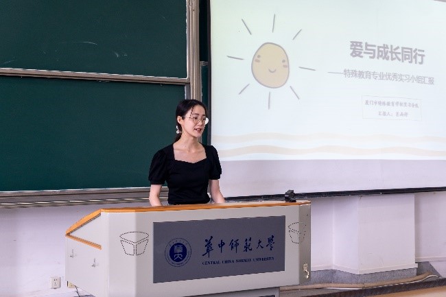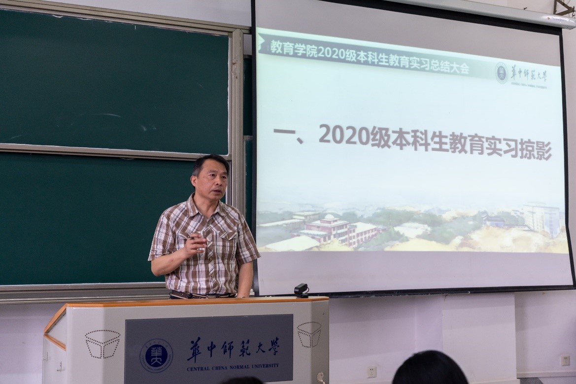 大会在实习纪实视频中拉开序幕,王健老师介绍了实习的总体情况。自3月教育实习启动以来,教育学院200名本科生分赴武汉、深圳、厦门、宁波等多地,深入中小学、幼儿园、特殊学校开展教学实践和教育研究,体验着从大学生到“准教师”的转变,感悟匪浅收获颇丰。