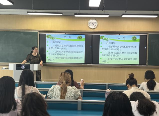 下午同时开设的专业课程还有王雯老师和尹国强老师的《学前教育管理学》。他们以互动的形式展开,和同学们共同探讨了当前我国学前教育管理中的典型现象和问题,引发学生对学前教育管理问题的关注,分析了学前教育管理学知识的应用价值和内容框架,揭示了本课程的教学目的和要求,鼓励同学们树立信心和志气,未来积极投身学前教育管理工作。杜珺老师的《特殊学生科学教育与指导》主要介绍了社会上特殊儿童的现状和教育需求,并鼓励大三的学生,为了下个阶段的实习和继续研究学习。马红梅老师的《量化研究方法》围绕量化研究在整个方法体系中的体系与位置、量化研究与质性研究的区别与联系等内容展开开学第一讲。