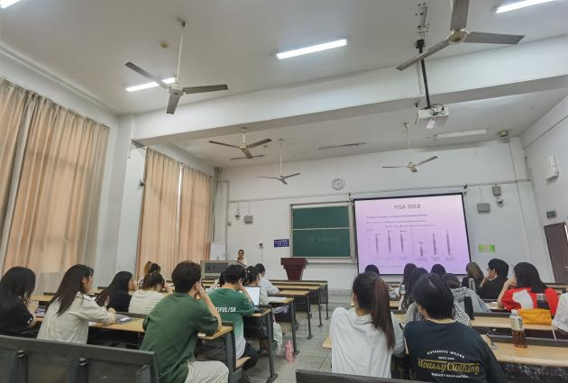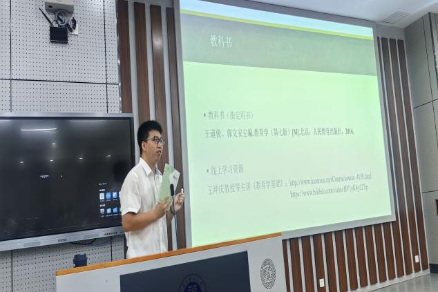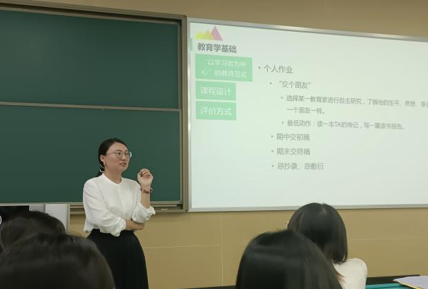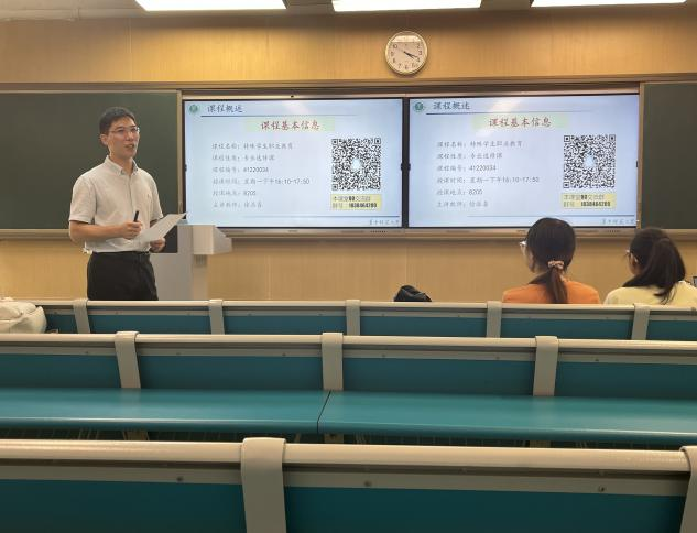 下午的专业课课堂上,白颖颖老师讲授的《中小学数学教育》先向同学们介绍了该课程的主要内容、基本构成和各章节即将学习的内容,而后以问题导入,通过讨论引导学生思考科学的数学观和数学教育观的重要价值,重点探讨了中小学数学教育的概念内涵、学科特点、研究对象,以及研究的基本原则等内容。龚欣老师的《专业英语》则对课程目标、结构等相关内容进行介绍,同时开展了国际教育新闻阅读与讨论。王崇高老师的《融合教育教材教法》围绕课程介绍、融合教育教材教法前置知识、课程调整与教学设计三大方面展开。刘丽伟老师的《幼儿科学教育与活动指导》简单介绍了课程性质、教学目的、考核方式,探讨了学前儿童科学教育的基本问题,讨论了“儿童的科学”概念,讲授了儿童如何学习科学,最后总结了儿童科学探究的意义和特点,帮助学生对学前儿童科学教育形成初步的理解。