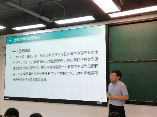 孙银光从专业情况简介、专业培养要求和专业发展前景三方面介绍了教育学专业的相关情况。王任梅从专业发展历史、师资队伍、人才培养及就业等方面对学前教育专业进行了介绍。苏慧从专业情况简介、国家重视程度、师资队伍、教学资源、实习基地等方面介绍了融合教育专业的相关情况,同时她还从个人对专业兴趣、专业认知、专业情怀和专业理智四个维度说明了该专业学生应具备的素质。