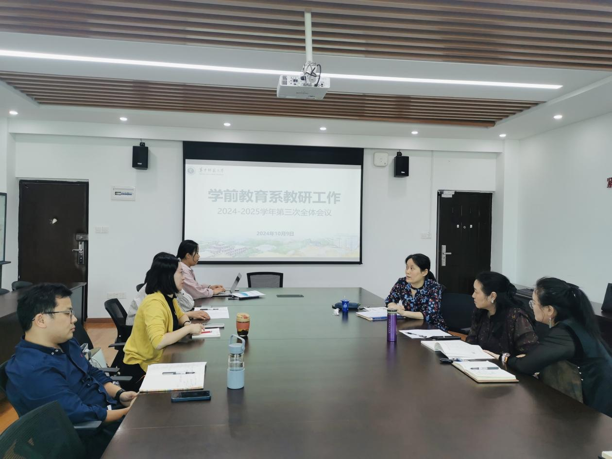 教育学院融媒体中心讯(通讯员 何婷)为迎接即将到来的本科教育教学审核评估,学前教育系结合评估要求与教育质量提升的实际需求于10月9日在田家炳教育书院举行了本学期第三次教研工作会议。会议由系主任吴航主持,副系主任王任梅以及专业教师王雯、王鶄、张娜、刘丽伟、杨大伟、罗枭和何婷等参会。会上,围绕“迎评提质”,吴航提出三个工作重点。