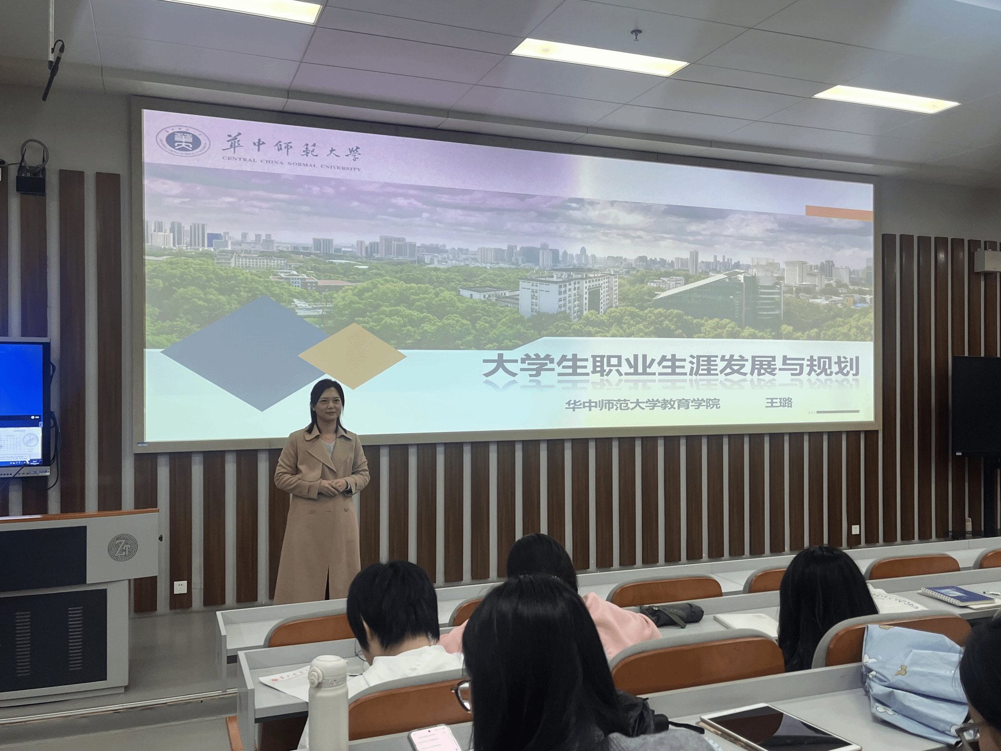 教育学院融媒体中心讯(通讯员 毕佳欣 刘月悦)2025年10月19日下午,教育学院新生研讨课(教育专业发展导论)第三讲“大学生职业生涯发展与规划”专题讲座于南湖综合楼N119报告厅成功举办。本次讲座特邀教育学院分管本科生工作的党委副书记王璐为大家讲解大学生如何为未来职业生涯做好规划与准备,教育学院2025级全体本科新生220人聆听了此次讲座,讲座由新生研讨课教师团队负责人蔡迎旗教授主持。