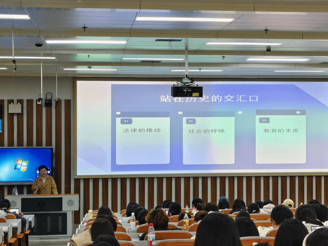 其次,王霞校长为同学们就“为什么是我们?”这一问题从“法律的推动”、“社会的呼唤”、“教育的本质”三个层面进行解答。我们站在历史的交汇口,教育的本质并不是简单的选拔和筛别,而是让每一个孩子都能够成为更好的自己。王霞校长强调,融合教育是时代发展的必然趋势,更是教育公平的生动实践。这份关乎教育温度与社会进步的历史责任和使命,已然落在了新一代“准教师”的肩上,这也正是“为什么是我们”的核心答案。