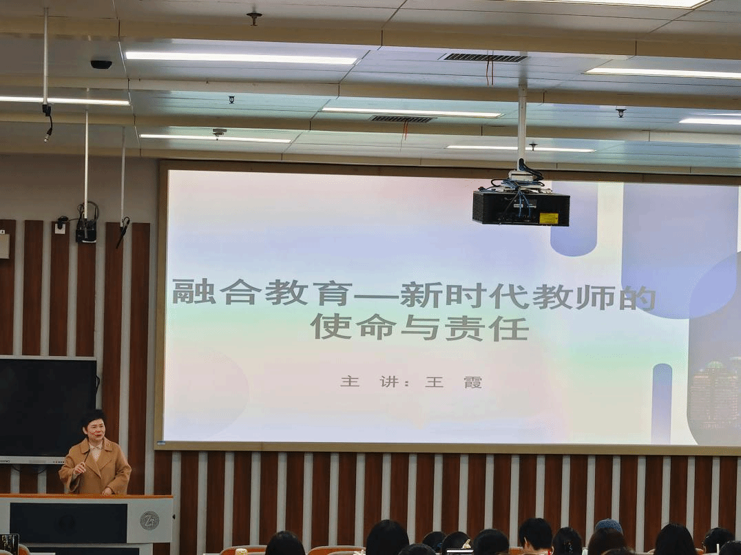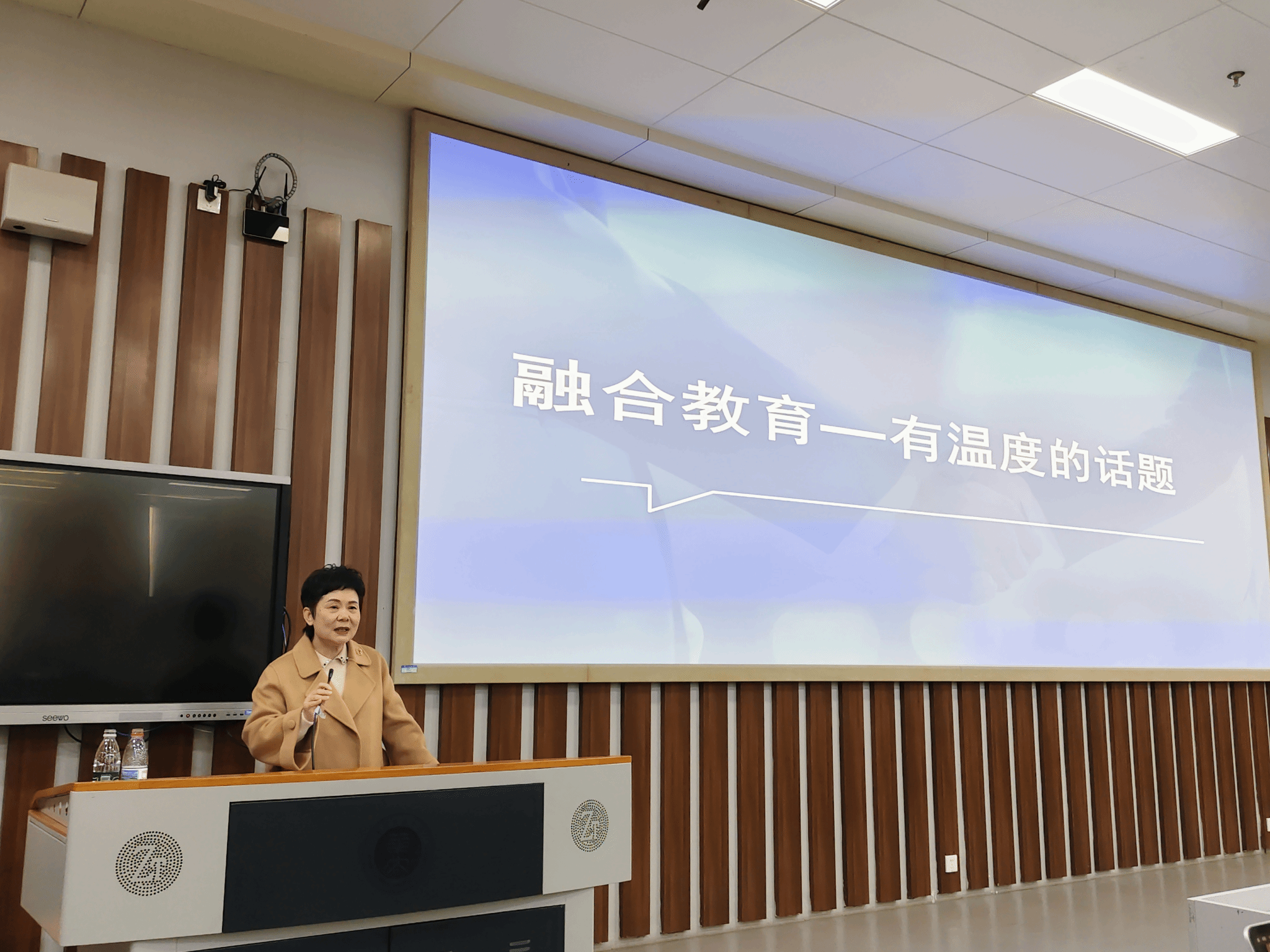 教育学院融媒体中心讯(通讯员 郑婉淋)2025年11月16日下午,武汉市武昌区培智中心学校王霞校长应邀在我校南湖综合楼N119报告厅,为我院2025级本科新生作题为《融合教育——新时代教师的使命与责任》的专题讲座。讲座由特殊教育系主任孙玉梅副教授主持,教育学院2025级全体本科新生220人参与。