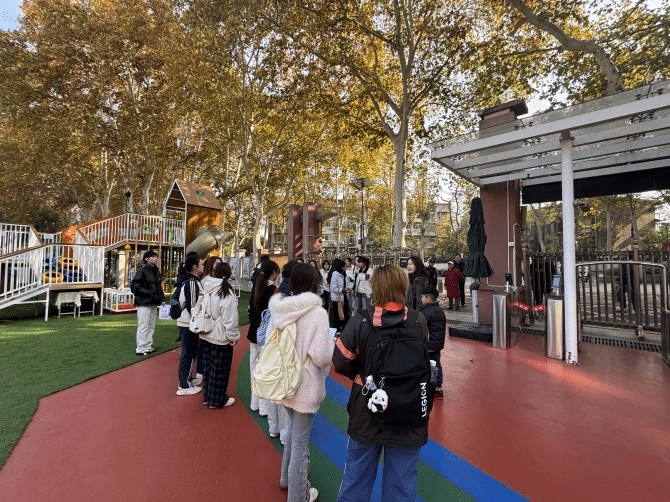 活动伊始,老师带领同学们在幼儿园门口集合,老师简要介绍本次观察任务后,大家有序入园,开启幼儿观察实践。