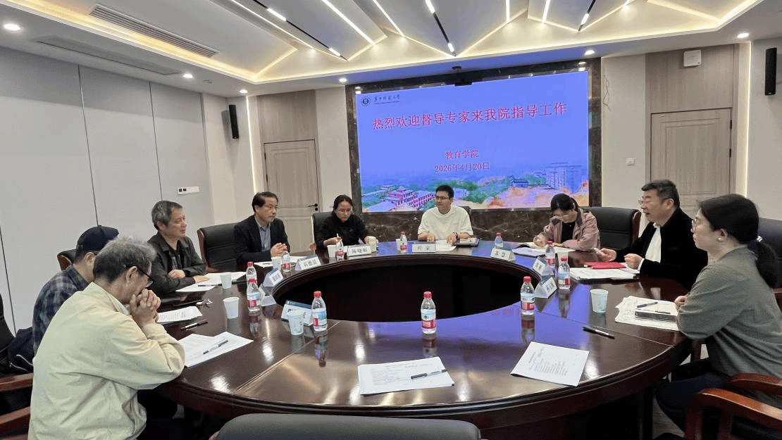 教育学院融媒体中心讯(通讯员 李柯仪)2026年4月20日上午,由胡田庚、程翔章、郑晓边、石德清、陈晓娟组成的学校督导专家组一行莅临学院开展2025—2026学年度第二学期学期初本科教学检查与评估工作。学院院长雷江华、副院长郑刚、特殊教育系系主任孙玉梅、特殊教育系苏慧、教育学系副主任程豪、本科教学秘书张丹玲等参加此次检查与评估工作。