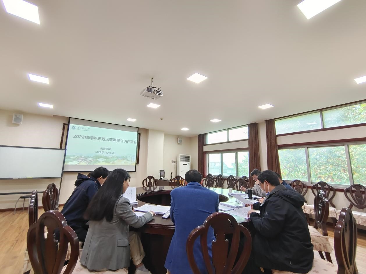 教育学院融媒体中心讯(通讯员 何品丽)根据《华中师范大学关于加快建设高水平本科教育的推进计划》《华中师范大学关于深化新时代学校思想政治工作的实施意见》和《华中师范大学课程思政建设行动方案》的要求,按照《关于申报华中师范大学2022年课程思政示范课程立项和优秀教师评选的工作通知》的安排,2022年11月15日,教育学院召开课程思政示范课程立项评审会,教学副院长田友谊、教育学类“立德树人”课程思政教学研究示范中心负责人郑刚、融合专业负责人雷江华、教育学系主任程红艳、教育史与比较教育研究所所长李先军、教师教育研究所所长毛齐明、本科教学秘书高晓智等出席本次会议,会议由田友谊主持。