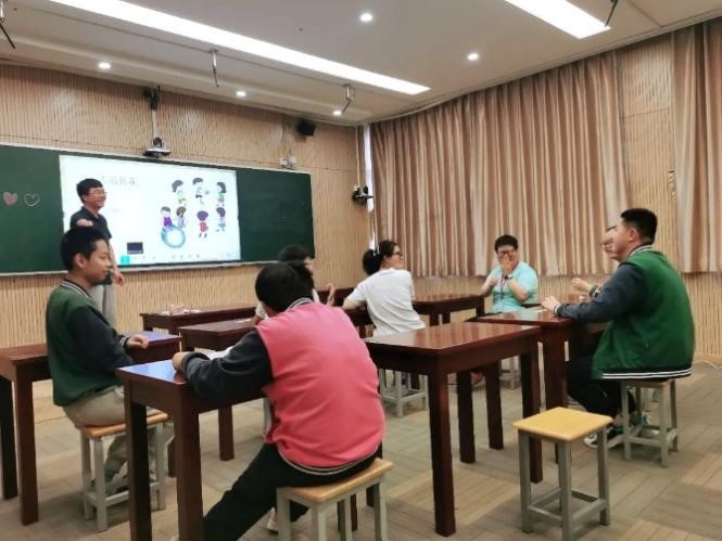本次汇报展示分为授课展示、课后交流两个部分。6名实习生依次进行主题班会授课。宁波市特殊教育中心学校德育处主任陈静,德育实习指导老师朱佳茜、邹凯东、李静、周儿、吴露露、王琼琼以及部分班主任随堂听课。
